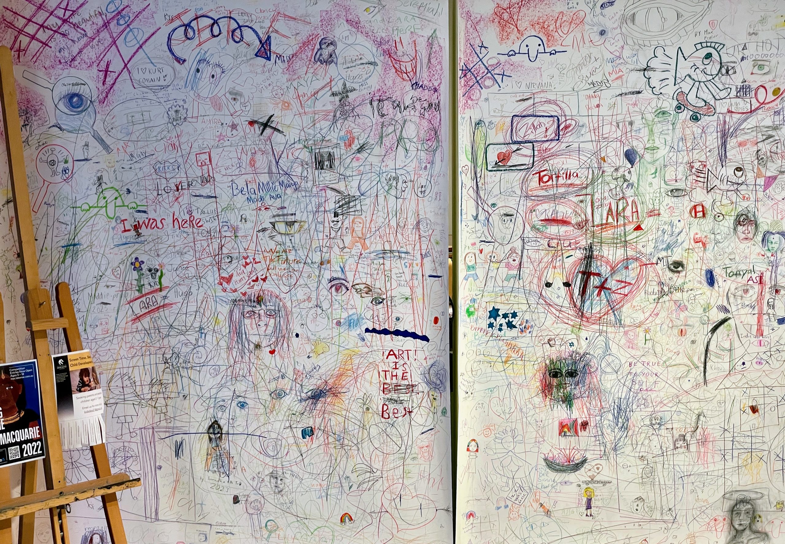 currently showing comprised of works by school children, with paintings, drawings and