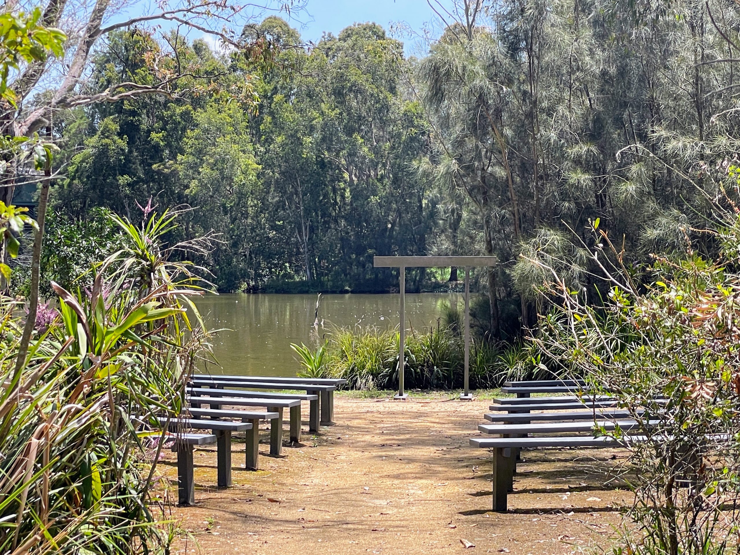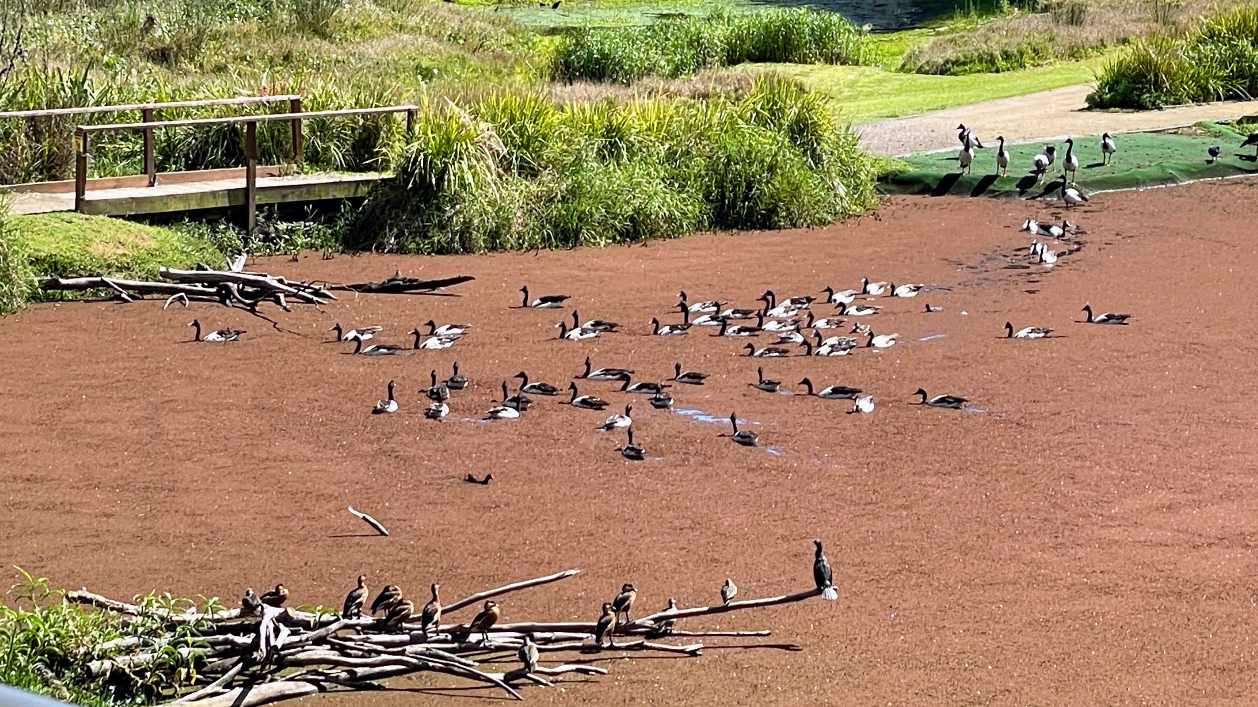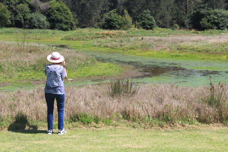 With the sun now shining and little threat of rain, the group made their way heading off in different directions along the many hard surfaced tracks and trails, all the time on the lookout for ‘that shot’ to comply with Barry’s suggestions. First up was feeding time at the ‘home base’ BHP Pond (one of the many ponds and swamps scattered throughout this establishment). This activity saw mainly Magpie Geese hungrily tucking in before cruising off in the pond. It was unfortunate that whilst there, and indeed at many of the other ponds and marsh areas, there was scant flying activity happening which was a little disappointing. However, many other localities, including the Moorhen Swamp, Bush Tucker Garden, Egret Tower, Water Ribbon Pond Hide and the Reed Marsh to mention just a few, provided many interesting items to investigate, ably supported by factual information boards. An interesting addition was the Open Air Chappel which has seen the odd wedding or two.